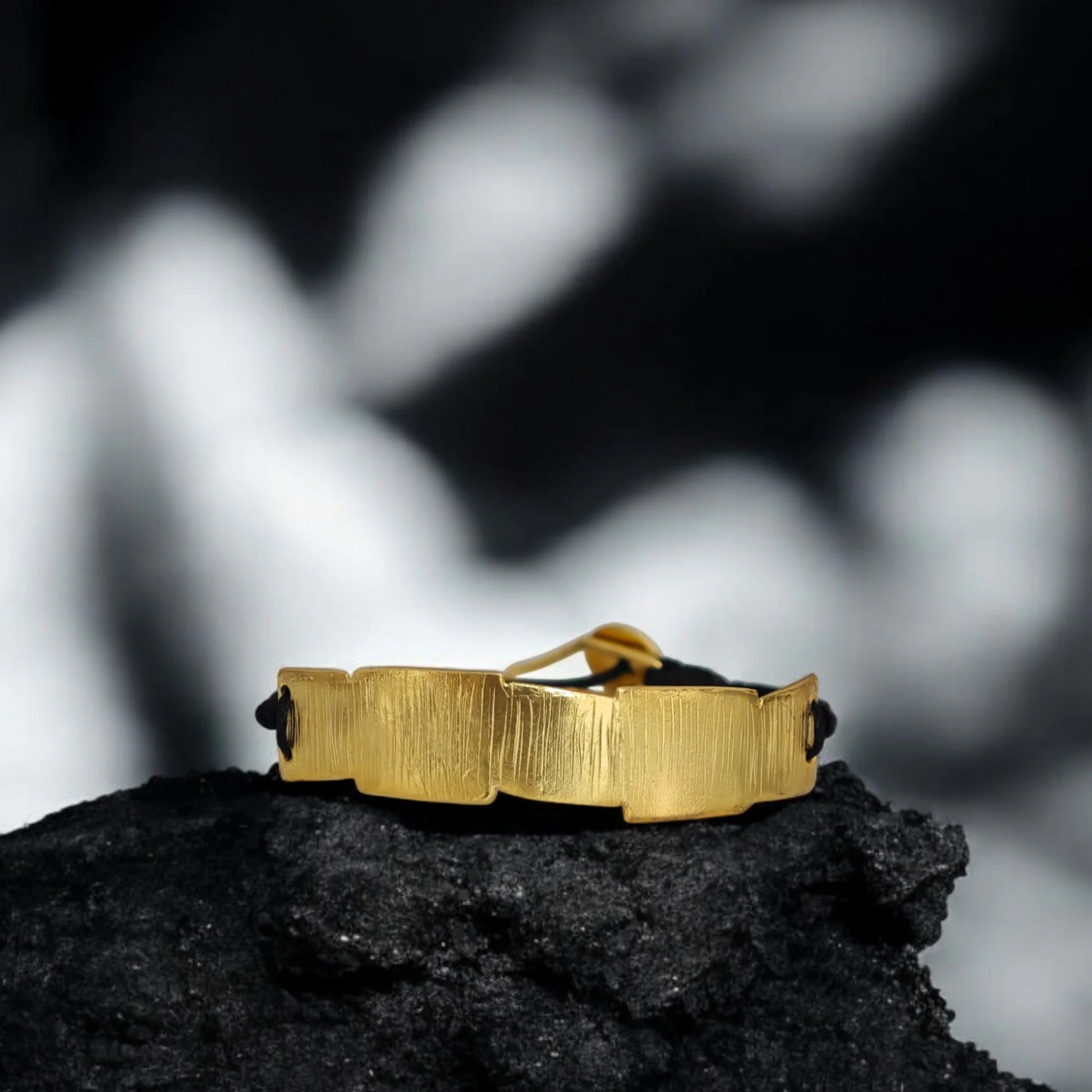 Această brățară din argint, cu plăcuță geometrică, este o piesă de bijuterie minimalistă și unică, realizată manual cu o textură distinctivă și un sistem de închidere special.