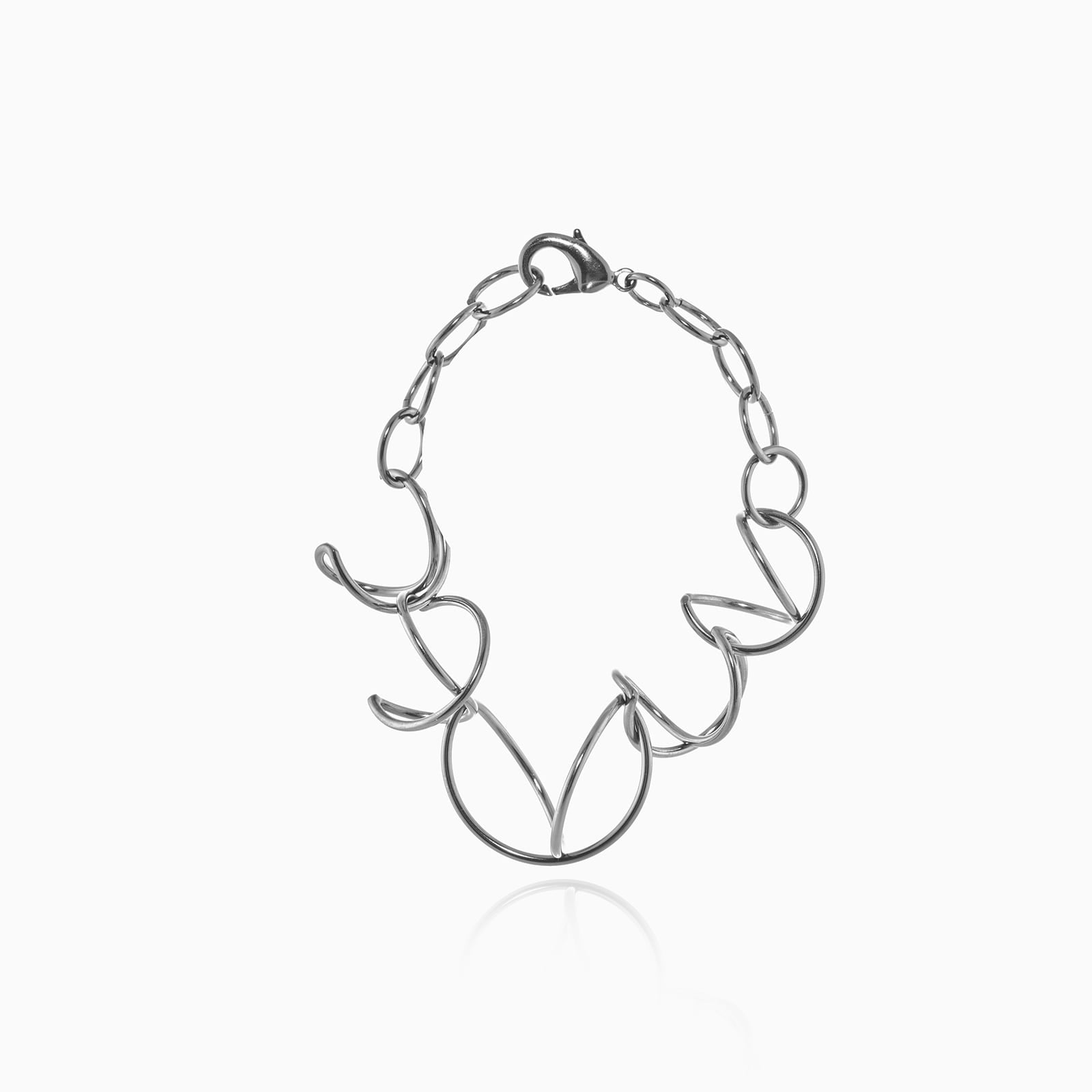 Acest design schimbă perspectiva asupra conceptului clasic de brățară tip lanț. Curvaturi ușoare, linii intersectate, un sentiment de mișcare și ușurință; toate compun o piesă care păstrează un echilibru între stilul simplu și cel exuberant.