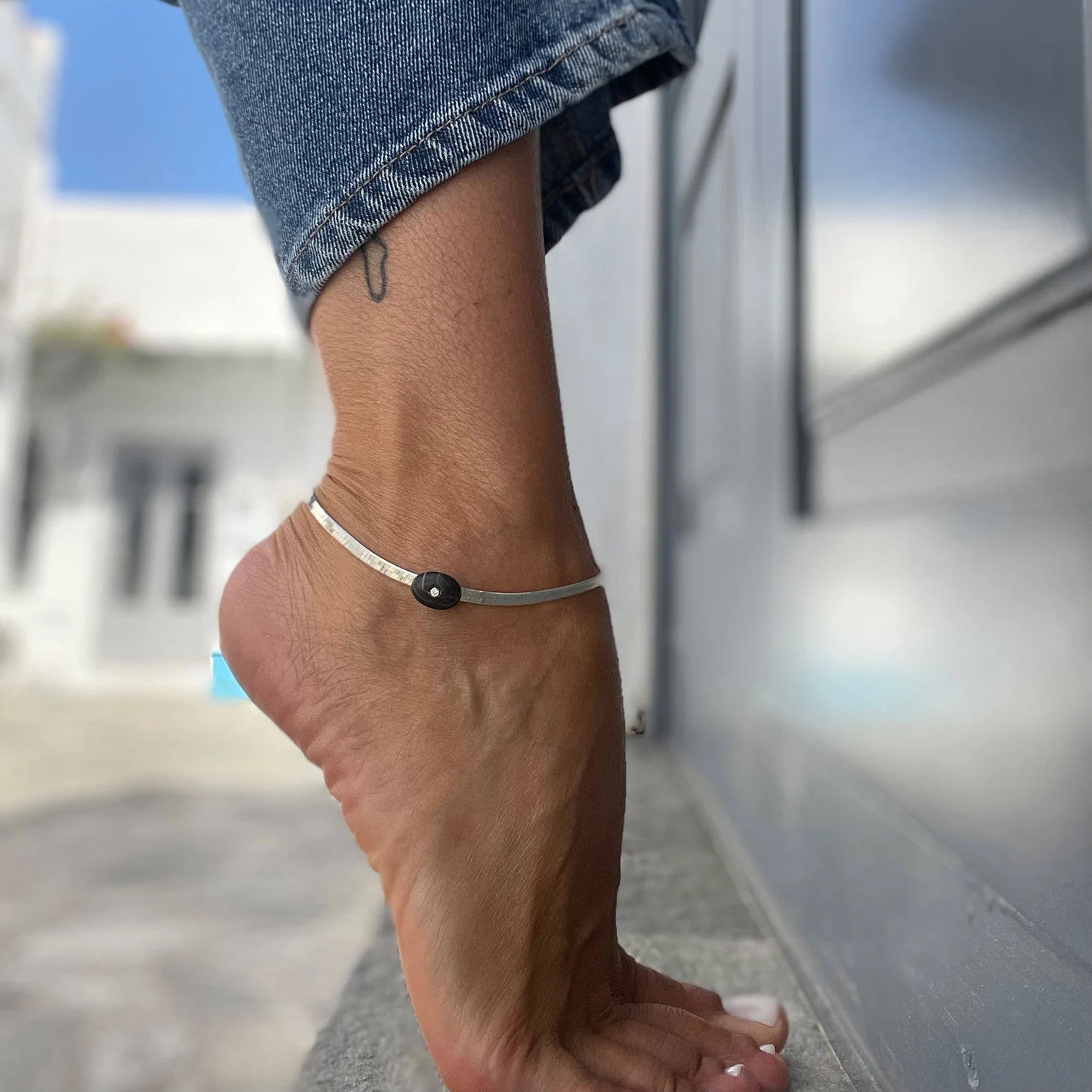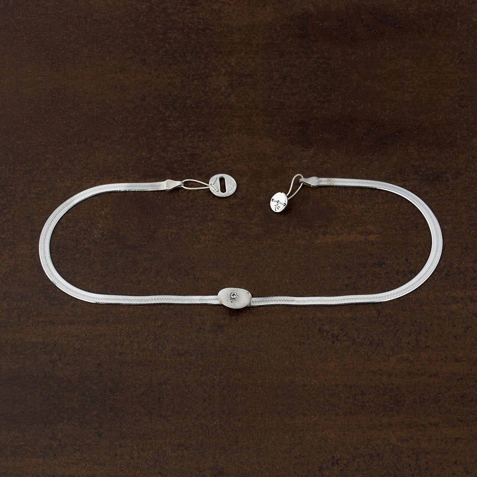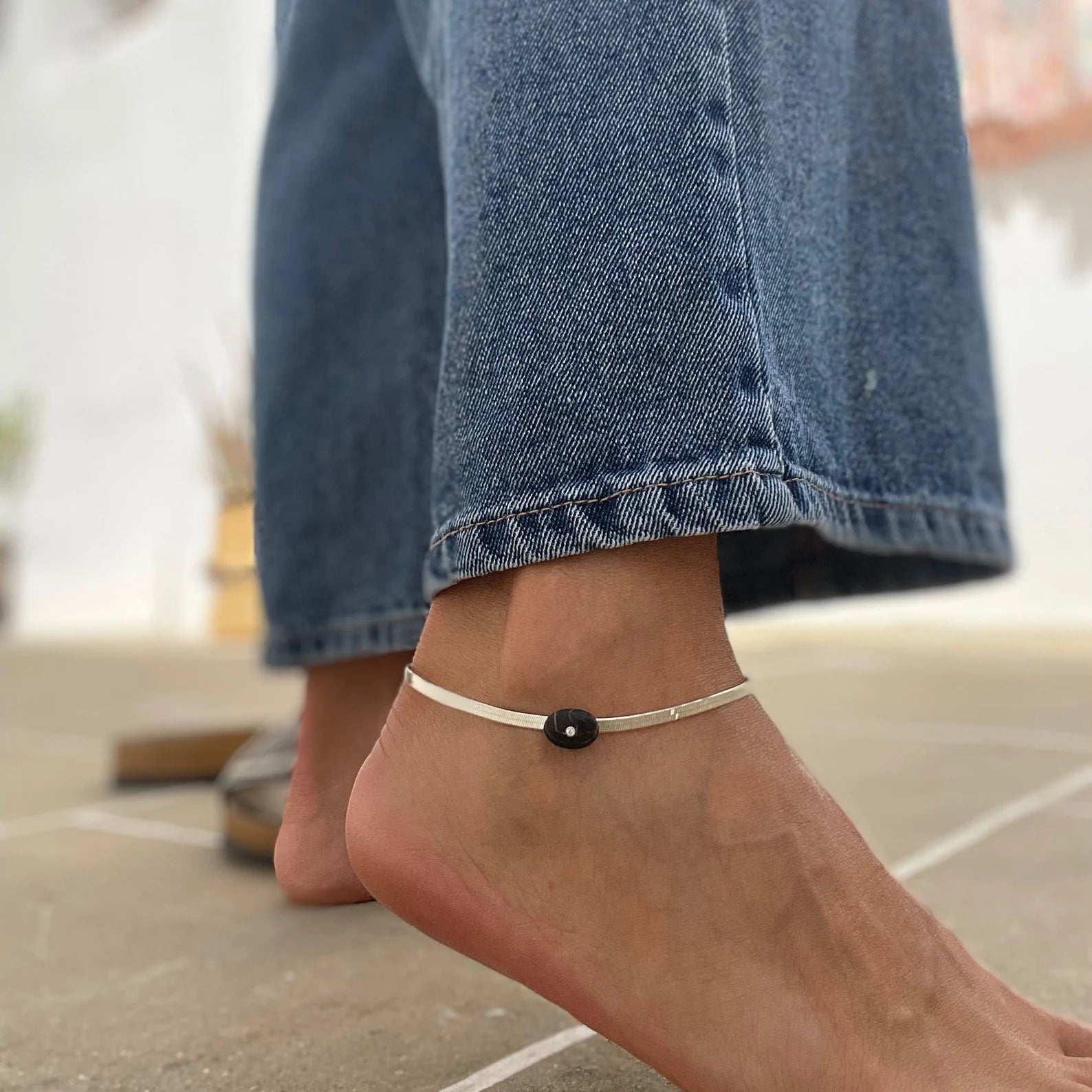 Brățară de gleznă | Lănțișor argint tip șarpe cu pietricică de plajă și zircon | Handmade de Ariadni Kypri | Colecția Ydor