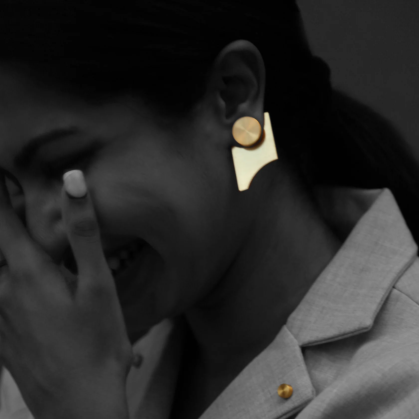 Îți prezentăm acești cercei extraordinari, cu studuri mari de 16 mm, împodobiți cu extensii îndrăznețe, tăiate mecanic și placate cu aur. Designul lor transformabil îți permite să treci cu ușurință de la o eleganță subtilă la un glam care întoarce toate privirile.