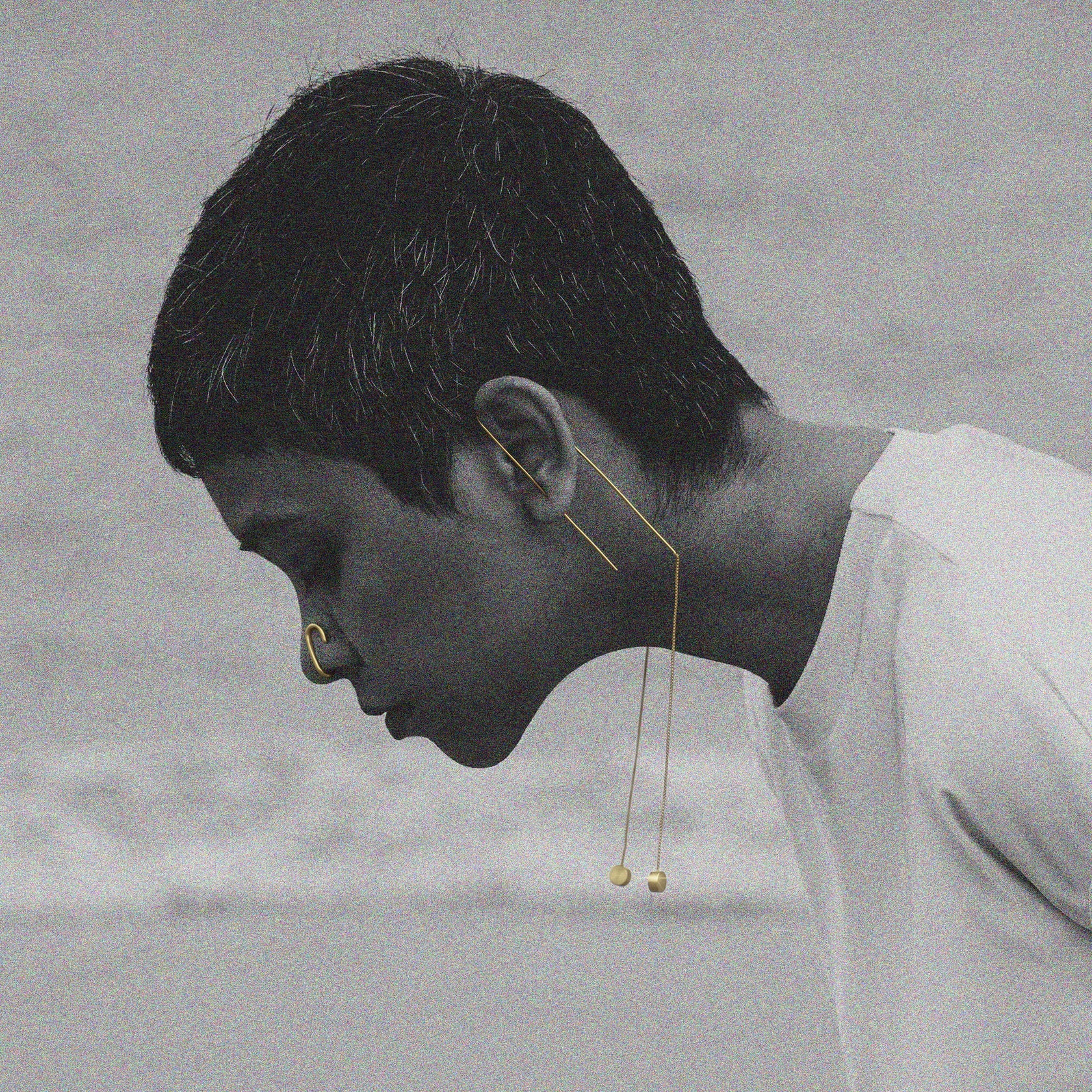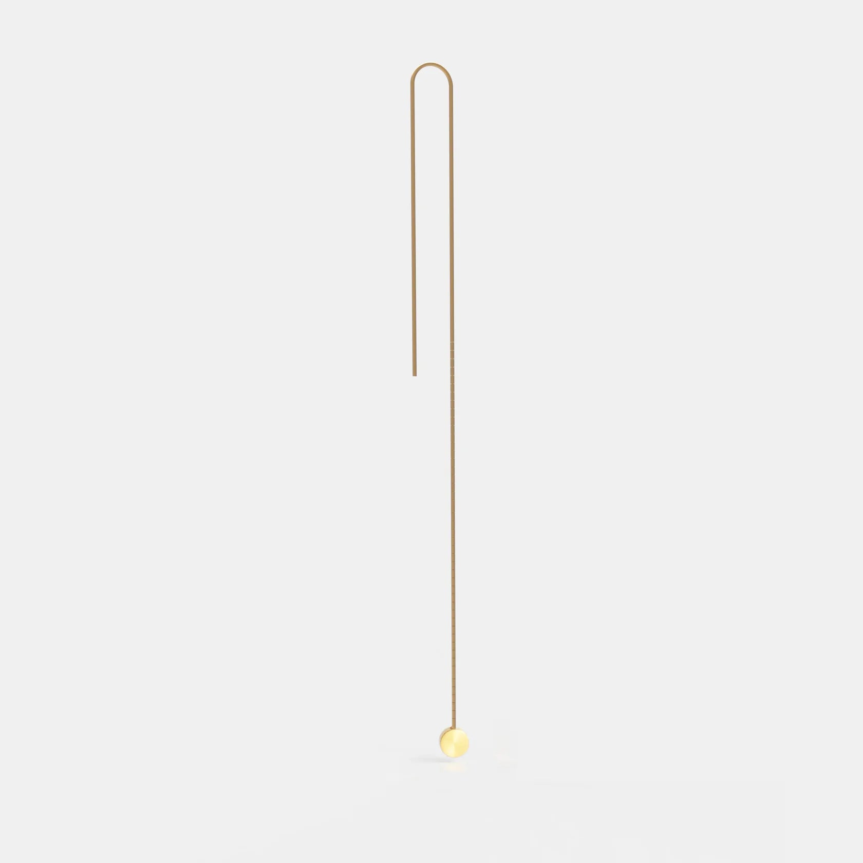 Designul prezintă un cercel lung și fascinant, format din două linii paralele – una împodobită cu un lanț delicat și un disc circular captivant, iar cealaltă trecând elegant prin lobul urechii, aliniindu-se perfect cu lanțul.