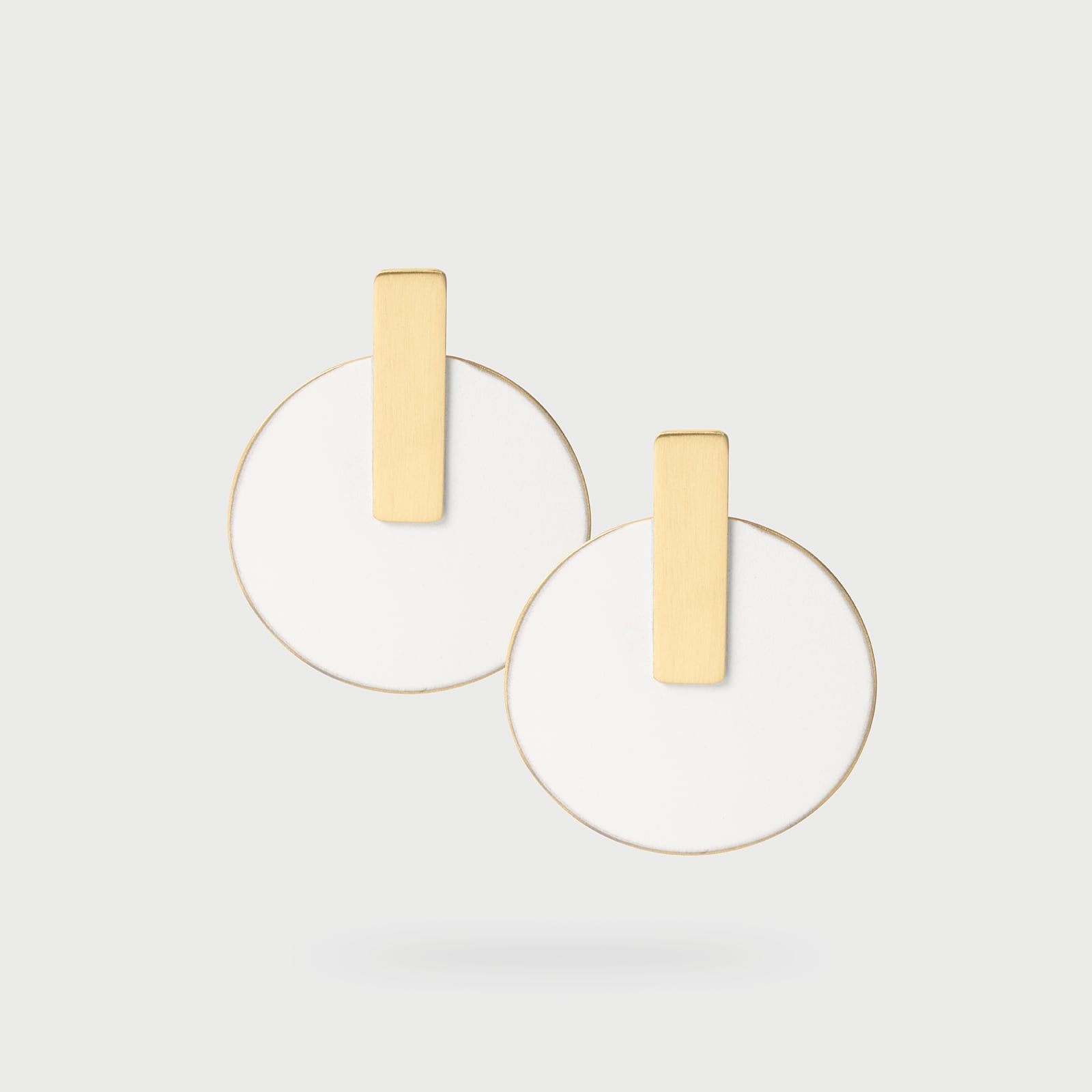 Coexistența geometrică a unui cerc și a unui dreptunghi într-o pereche de cercei cu o mare flexibilitate stilistică. Eleganța bicoloră și liniile curate, austere, formează o piesă ușor de purtat, dar plină de atitudine.