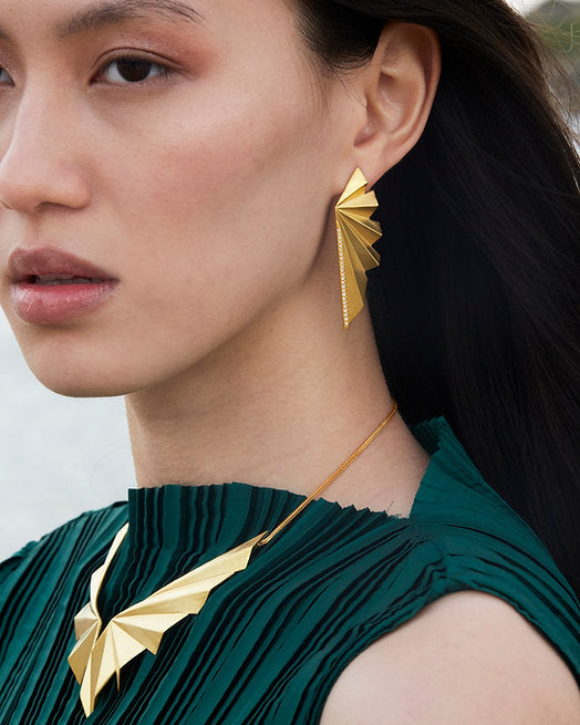 Cercei Folds Mărime Mare din Argint 925 Placat cu Platină sau cu Aur, cu Zirconiu