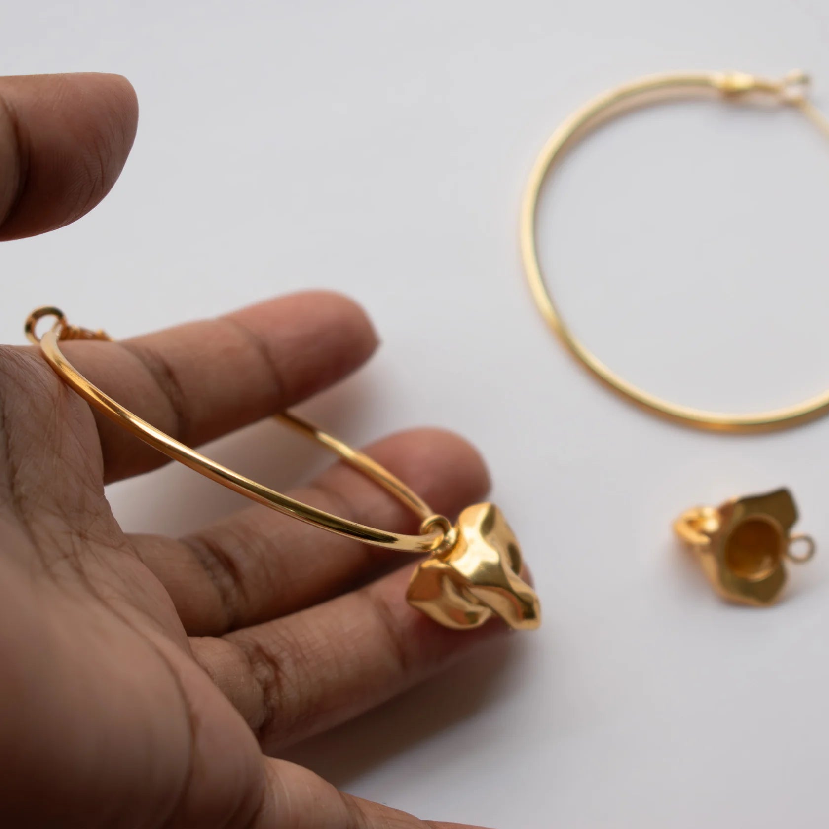 „Elephanticipate” eleganța. Aceștia nu sunt doar niște cercei tip hoop; sunt o adevărată turmă de înțelepciune purtată la urechi. Cu un pandantiv detașabil în formă de elefant, din alamă placată cu aur, acești cercei îți aduc grația blândului gigant și simbolul cunoașterii ancestrale.