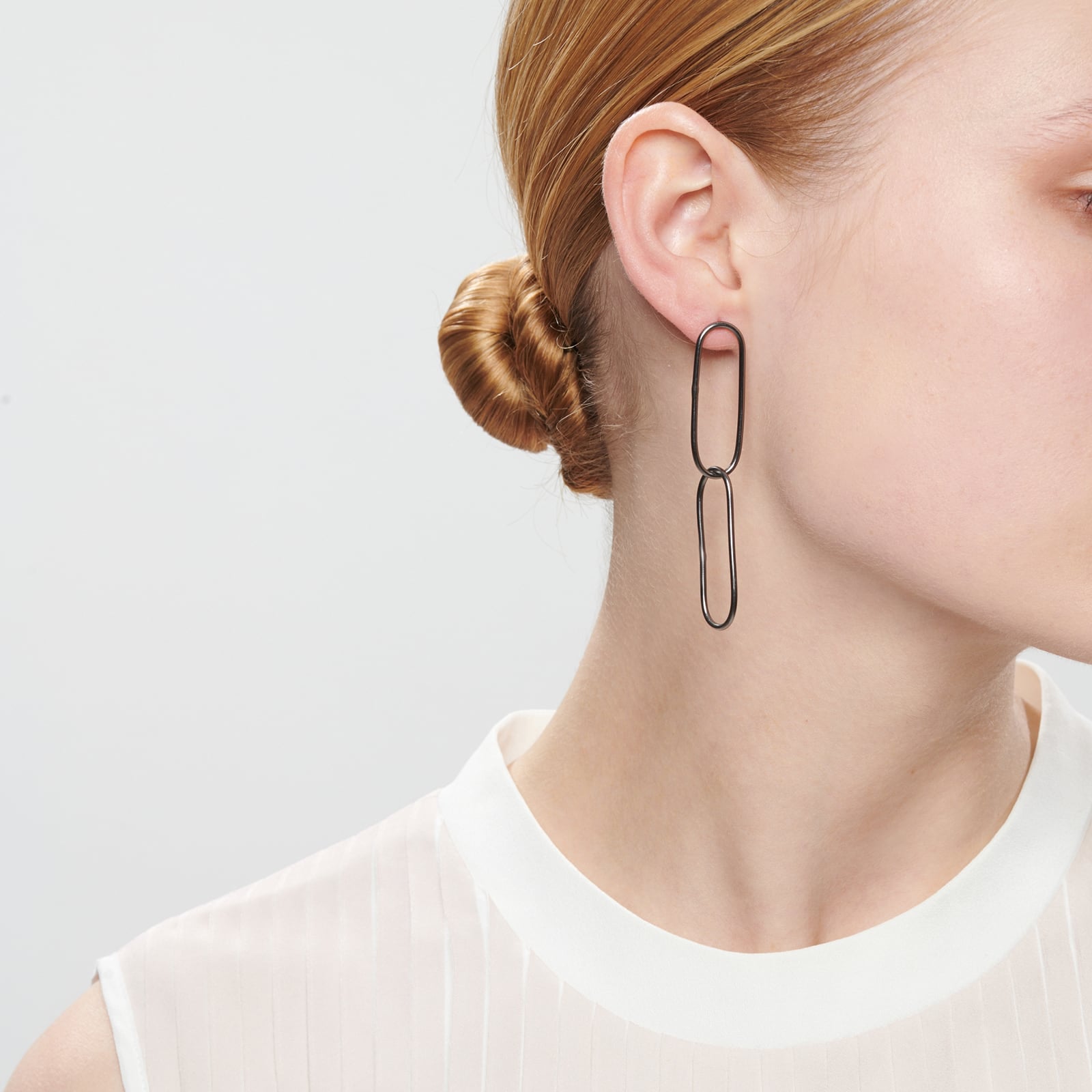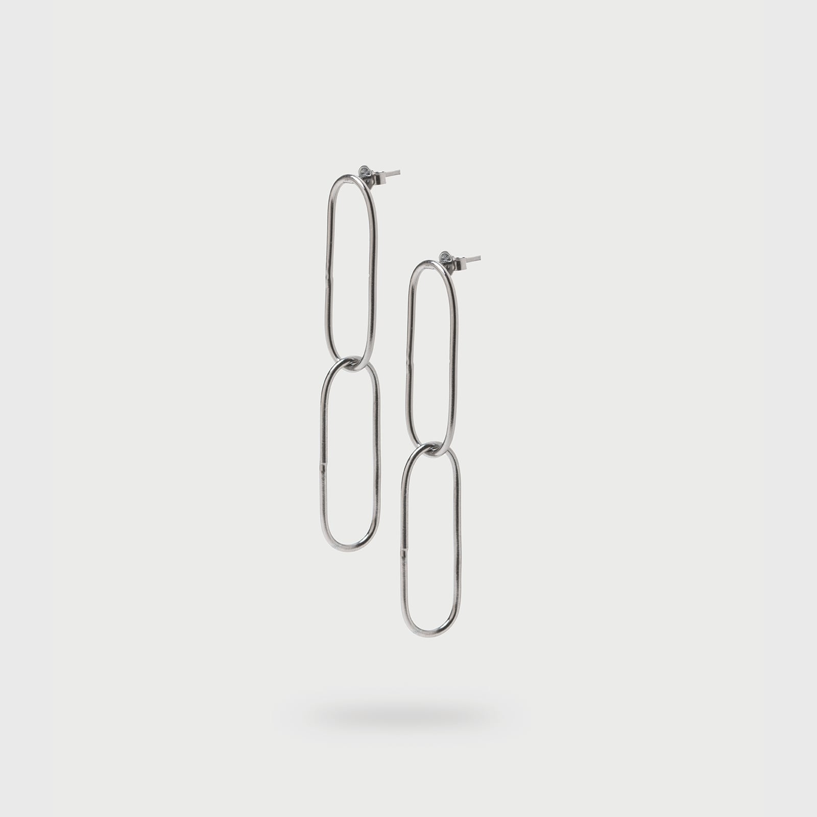 Inelele își schimbă forma, devin ovale și reîmprospătează imaginea. Formele repetitive creează o pereche de cercei cu un aer modern, în timp ce tonurile minimale cresc ingenios intensitatea stilului.