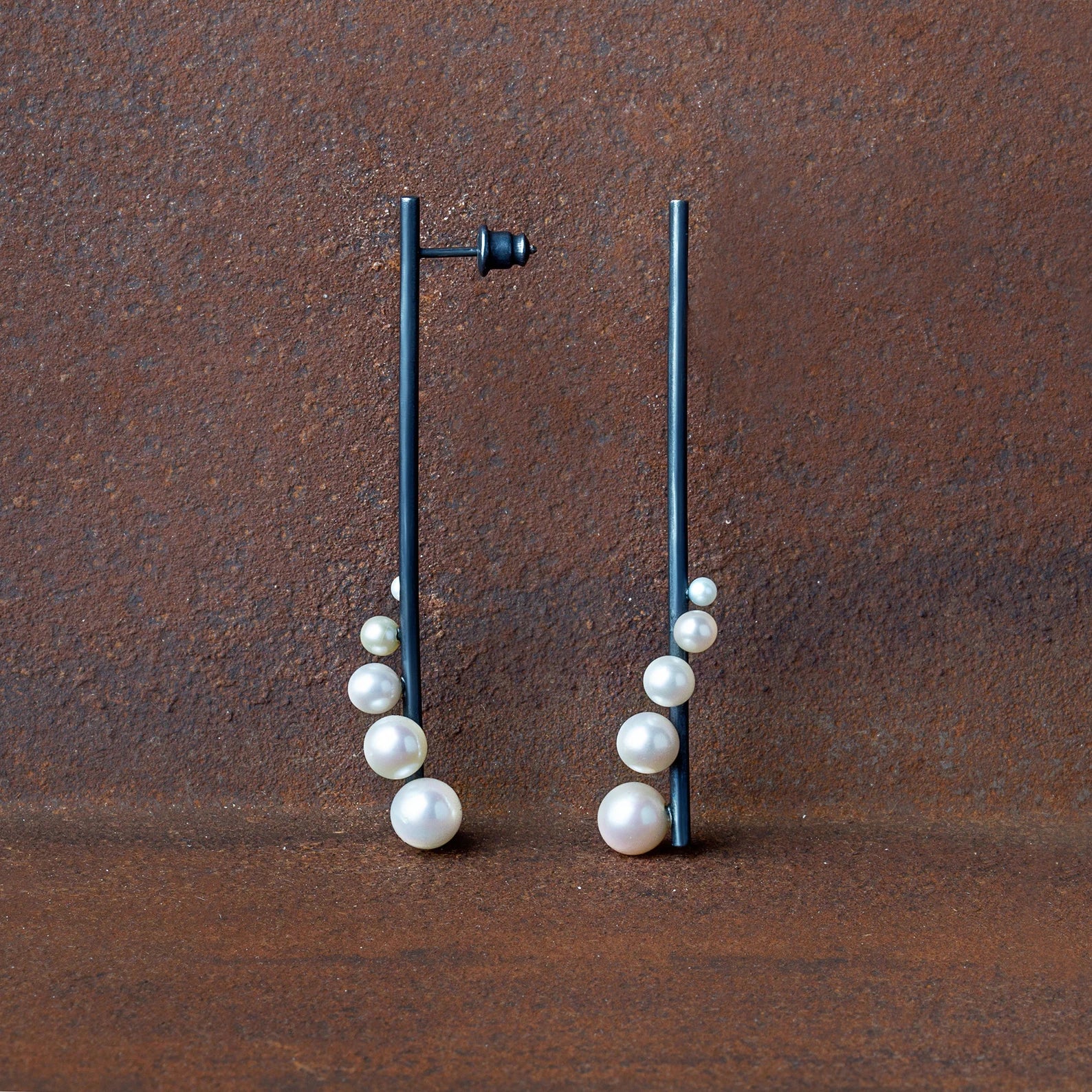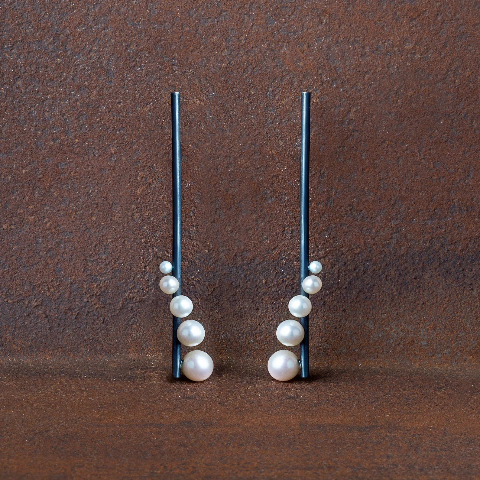 Cercei Pearl Swirl | Single sau pereche | Argint negru oxidat și perle de apă dulce