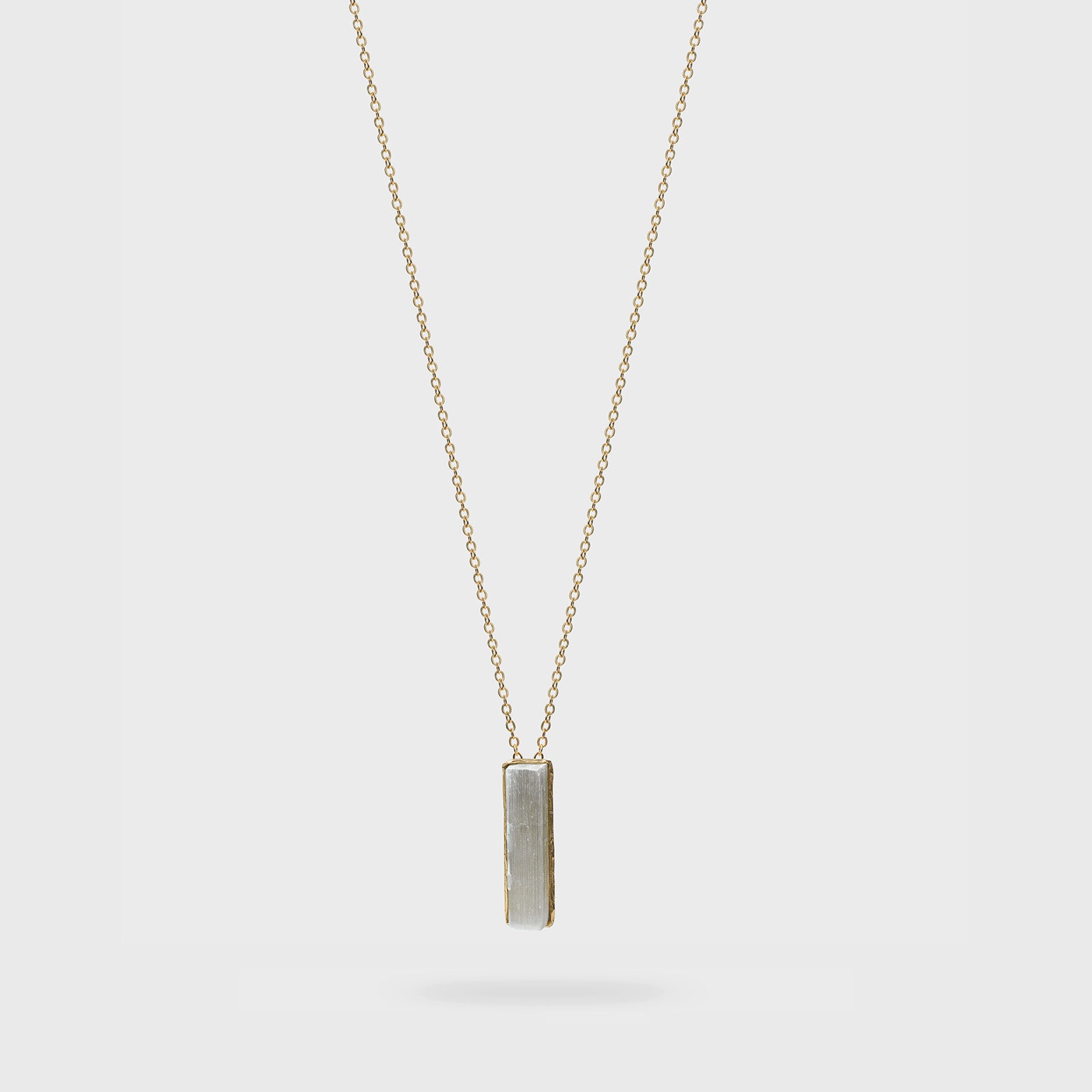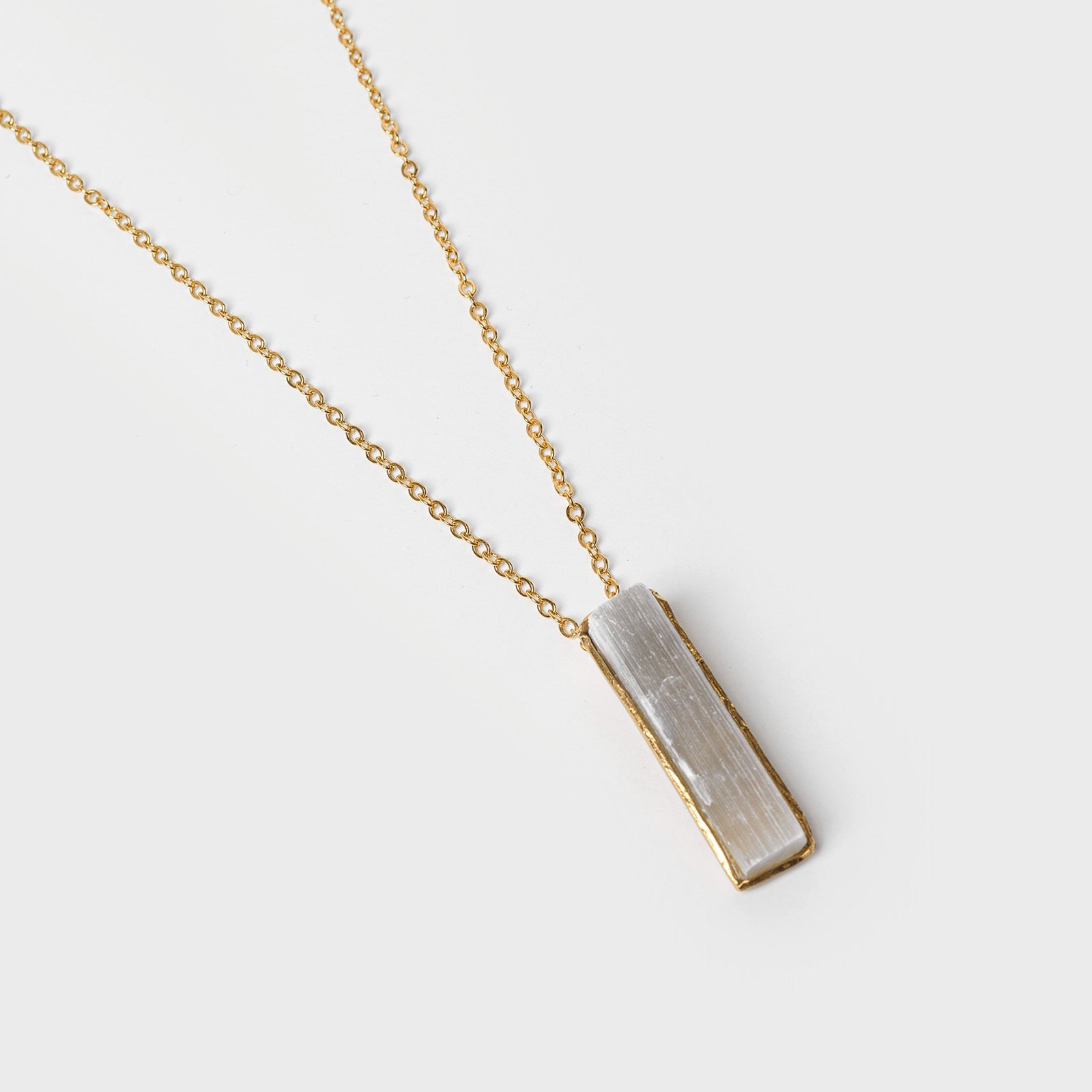 Ca o cometă care cade din cer și ajunge pe pământ, producând o strălucire asurzitoare, acest colier cu caracter minimalist și materialul dur de selenit „ajunge” în ținutele noastre zilnice și le face cu adevărat speciale și stilate.