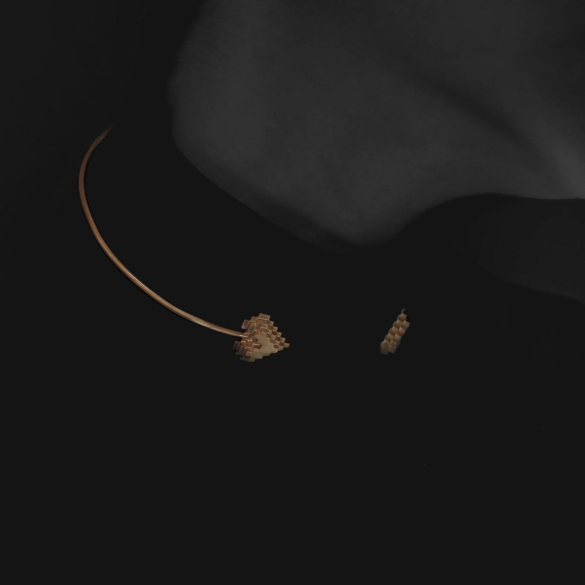 Game Over, Lover — pentru că unele inimi vin cu vieți suplimentare, iar altele doar reiau jocul. Două inimi pixelate atârnă în sincron auriu, fluturându-se pe claviculă ca o poveste de dragoste în versiune 8-bit. Este o inimă frântă? Un scor maxim? Sau doar felul tău de a spune „mulțumesc pentru joc”? Oricare ar fi starea, această piesă este power-up-ul tău ascuns — jocul continuă, inimă-frântă.