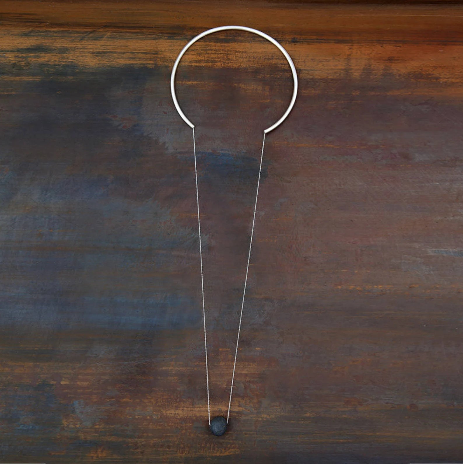 Colier Indiko – Ariadni Kypri | Choker din argint cu pietricică de plajă pe lanț lung fin | Colecția Ydor
