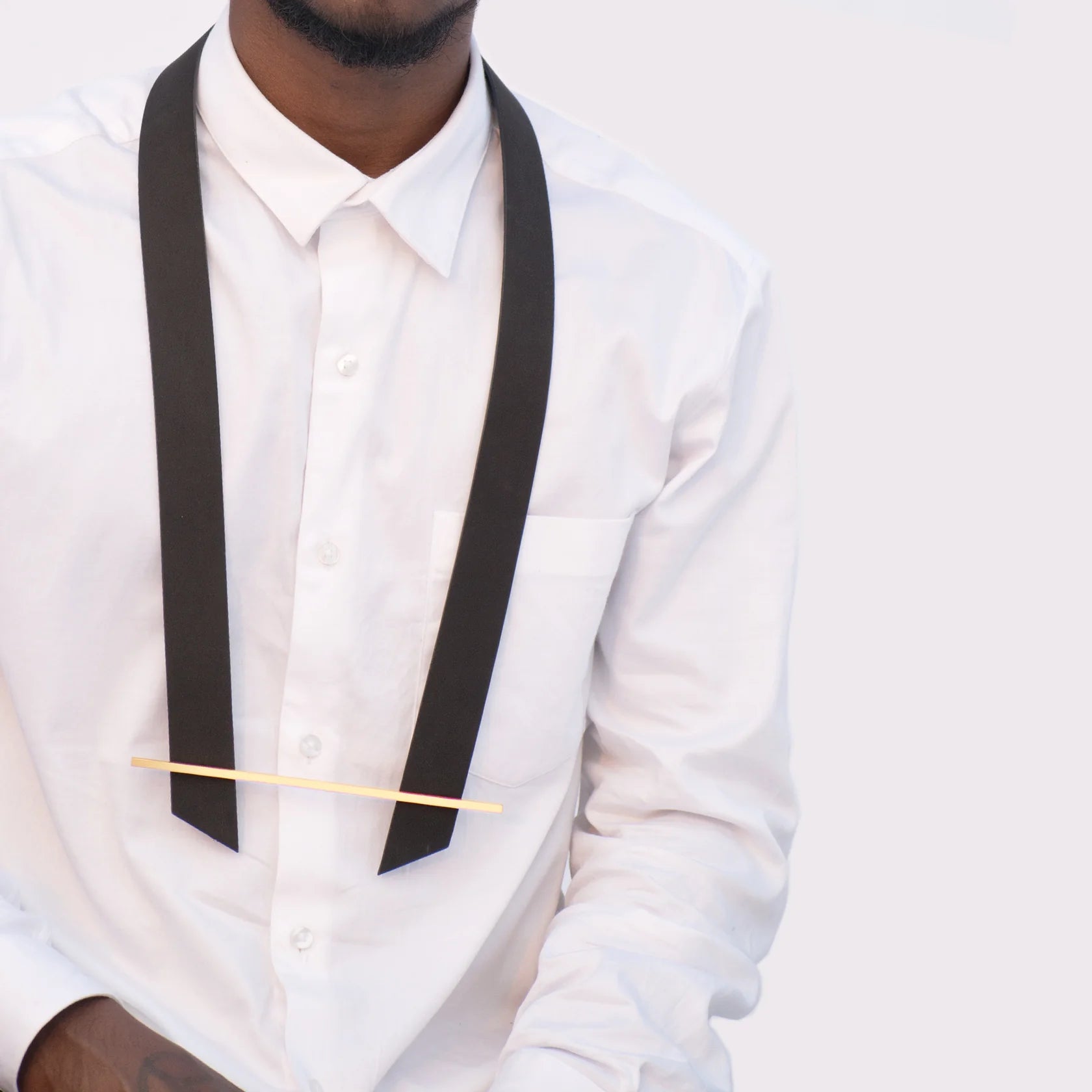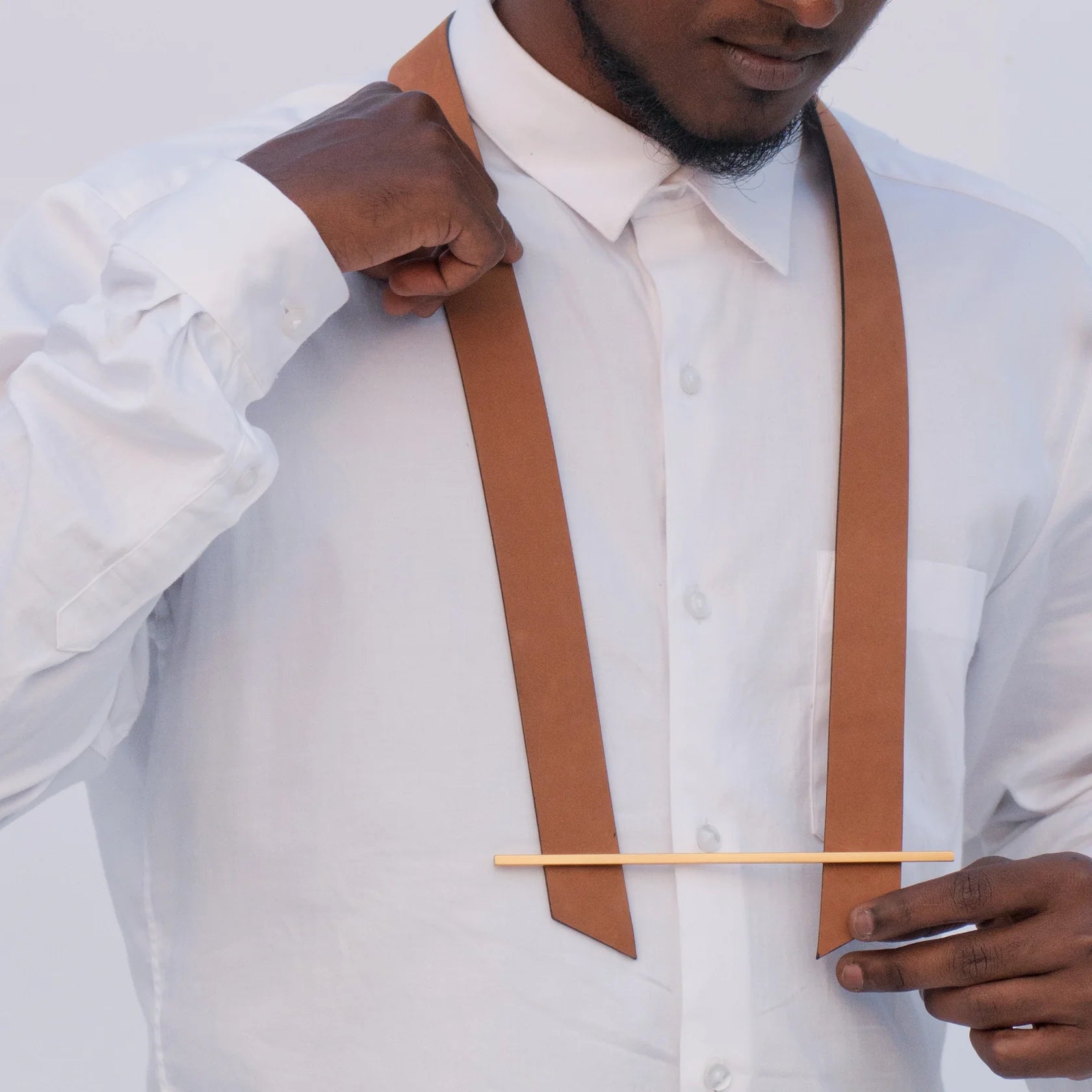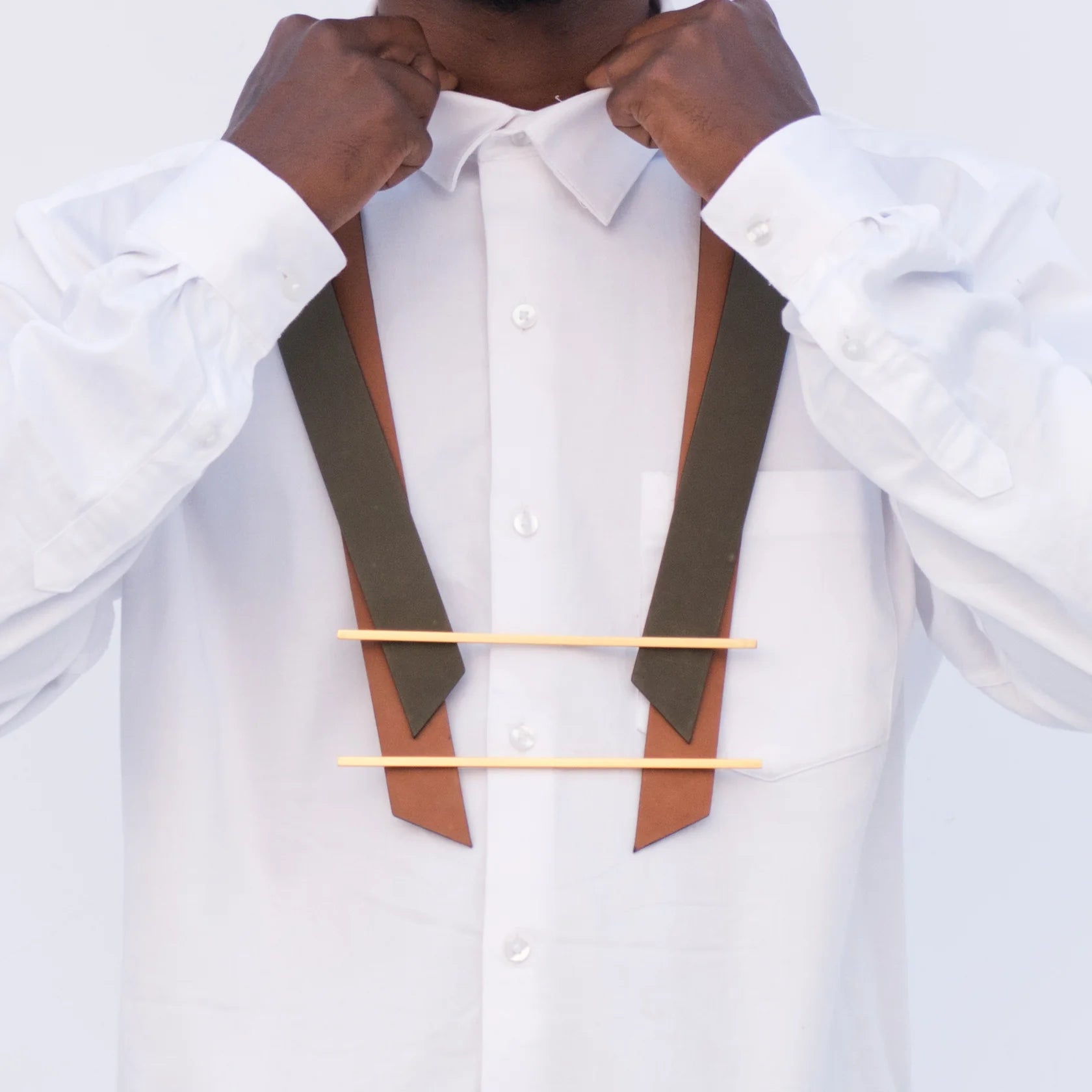 Îmbrățișează contrastul captivant dintre pielea suplă și accentele aurii strălucitoare care devin punctul central al acestui colier rafinat. Poartă-l alături de ținute în tonuri neutre pentru a crea un ansamblu armonios, lăsând colierul să fie piesa de rezistență a look-ului tău.
