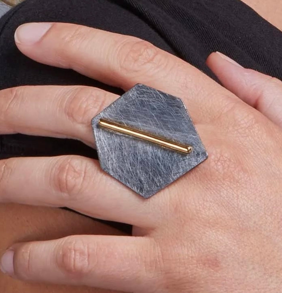 Inel din colectia designer-ului grec Sofou cu inspiratie frunza de maslin.