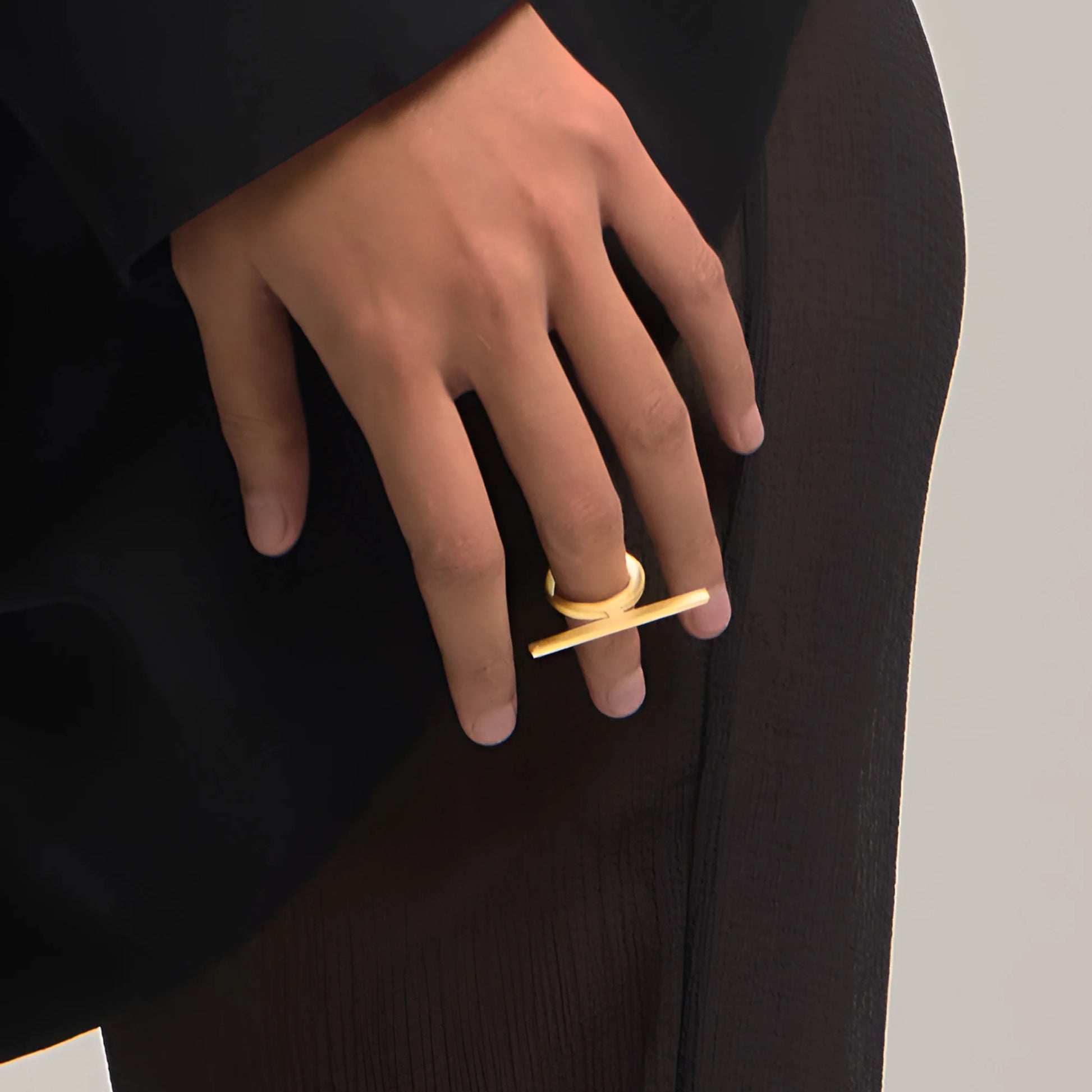 Acest inel midi jucăuș este o modalitate distractivă și neașteptată de a accesoriza. Bara orizontală unică este un exemplu perfect de „mai puțin înseamnă mai mult”, creând un aspect ludic și plin de farmec. Designul său ușor îl face confortabil de purtat, iar finisajul auriu de 24 de karate adaugă o notă de rafinament.