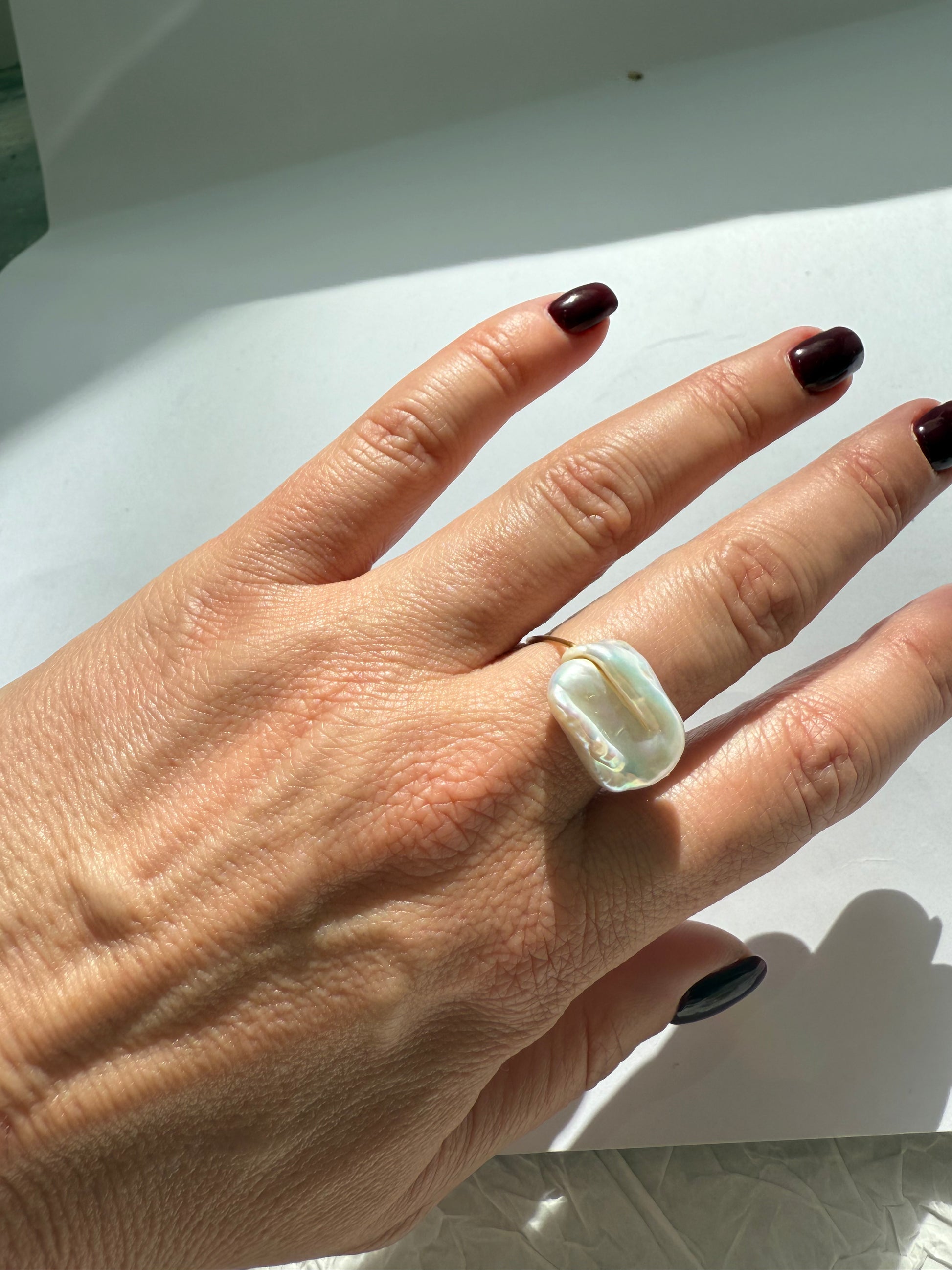Inel din argint cu perla creat de designerul Eftihia Siamouli din Thessaloniki.