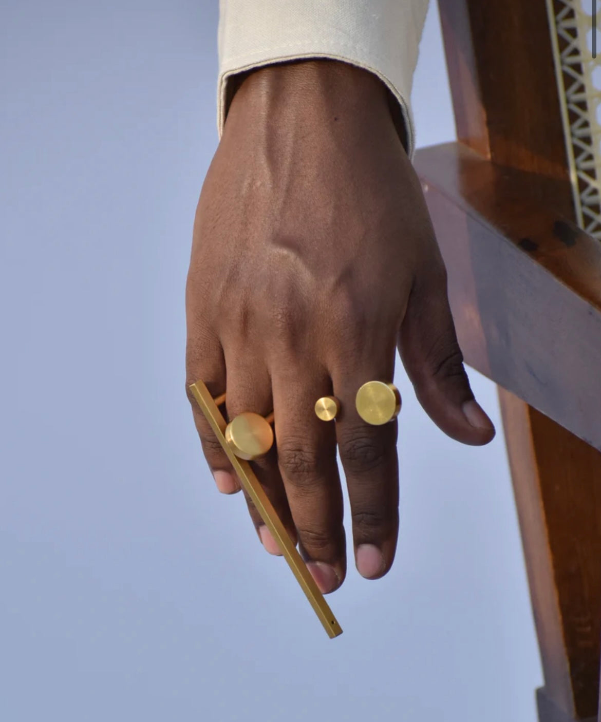 Inel Inscribe care poate fi reconfigurat cu alte piese de la acelasi designer NoNaMe. Cele 2 discuri sunt inegale ca si diametru.