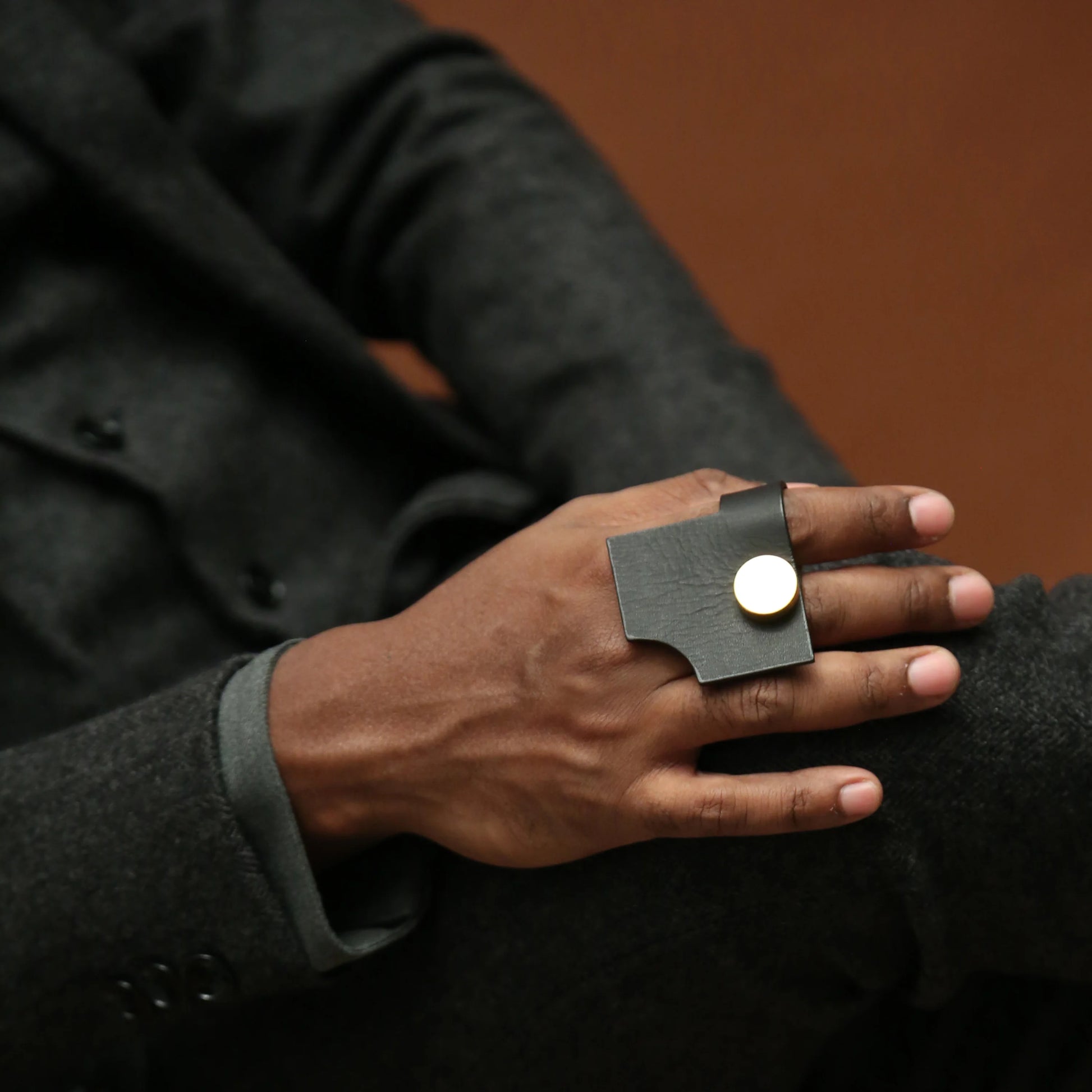 Inelul Leather combină ingeniozitatea cu eleganța. Șnurul cu două găuri permite o ajustare rapidă și o potrivire perfectă, în timp ce butonul metalic elegant funcționează ca un ancoraj, menținând inelul fix și confortabil pe deget. O piesă practică, dar cu stil