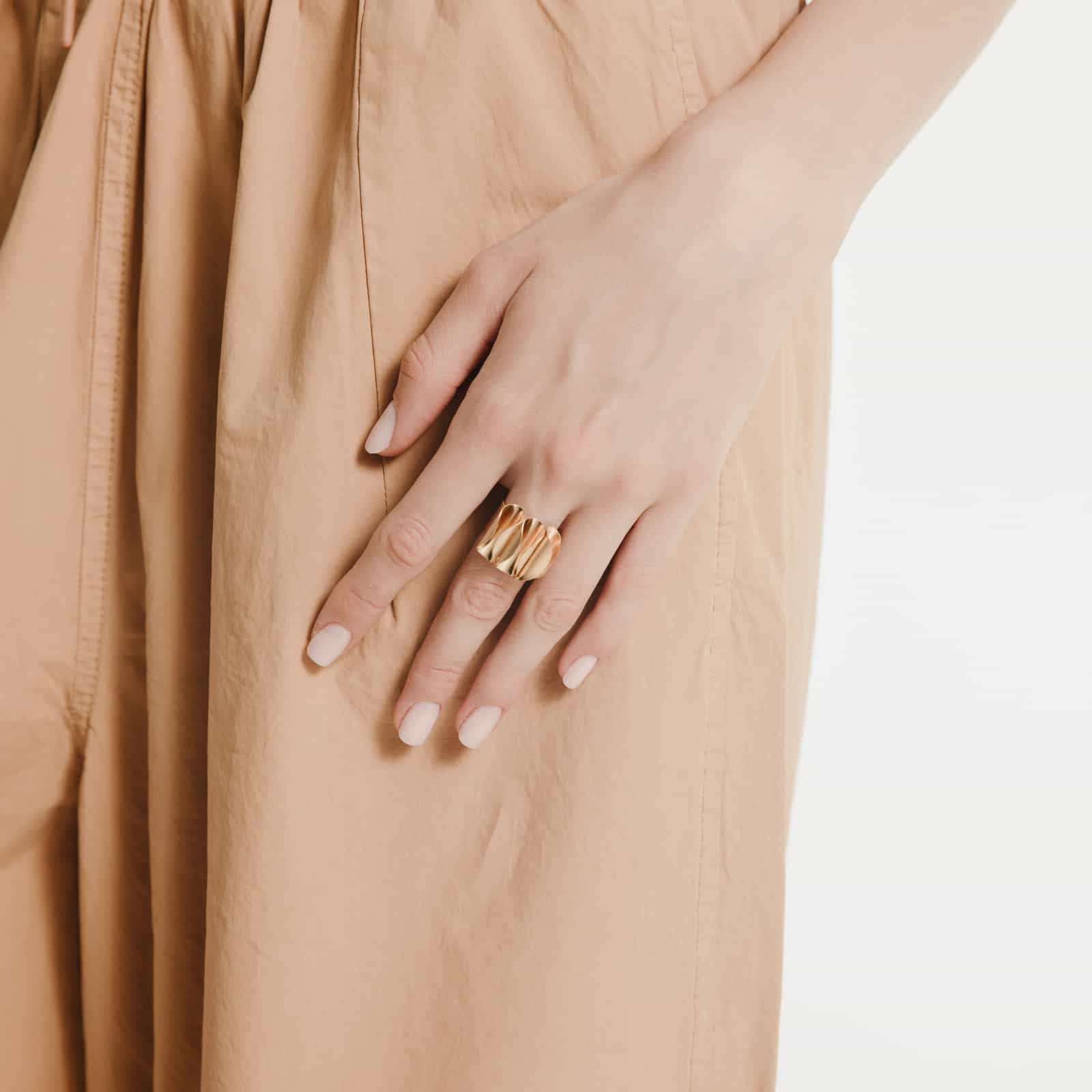Alama pare a fi striată la baza inelului, iar acest detaliu atrage atenția chiar și pentru cei mai pretențioși iubitori de modă. Extravaganța nu este singurul element care captează atenția – inteligența designului și eleganța sunt, de asemenea, mai mult decât suficiente.